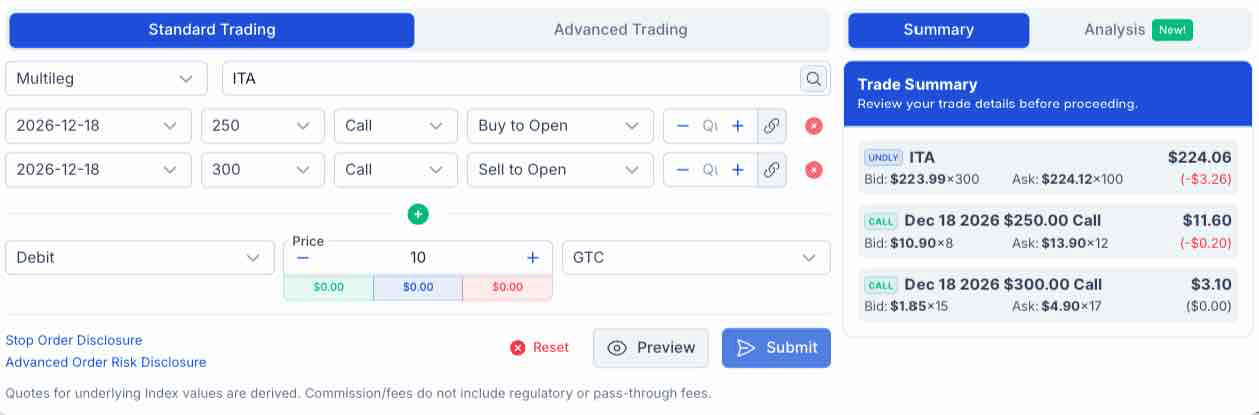 💡 Today's Trade Idea: Bull Call Spread on ITA.