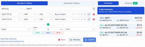 Trade Setup: Buy $480 Call / Sell $600 Call, January 15, 2027, expiration.