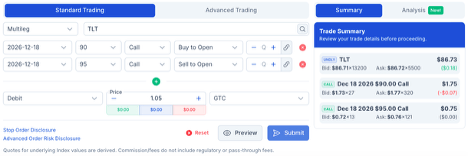 The TLT $90-$95 vertical bull call spread expiring in late 2026 has an attractive risk-reward ratio.