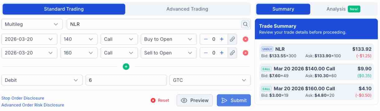 💡 Today's Trade Idea: Bull Call Spread on NLR.