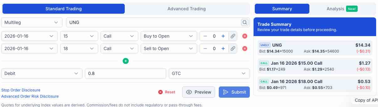 ๐ก Today's Trade Idea: Bull call spread in the UNG natural gas ETF.